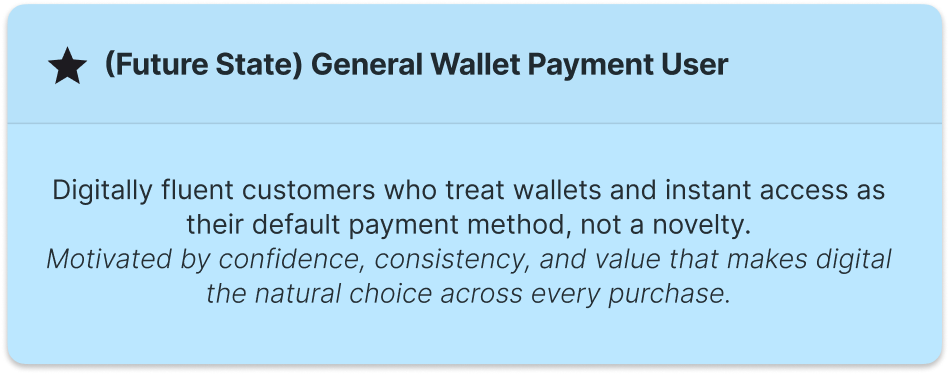 The Day Zero experience was designed to meet customers where they are, whether hesitant, curious, or loyal, and guide them toward greater digital confidence and engagement. By surfacing clear value, simplifying instant access, and reinforcing trust, the experience helps move users across archetypes toward the General Wallet Payment User mindset and builds lasting digital adoption over time.